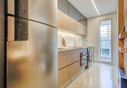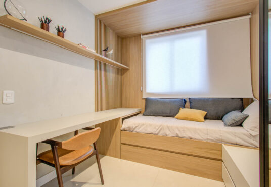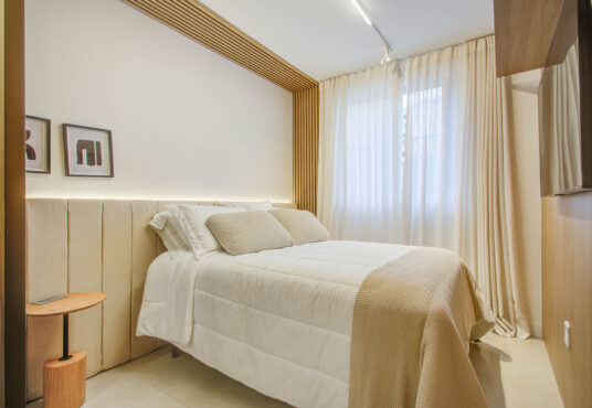 – Piso laminado nos quartos, exceto nos apartamentos de térreo